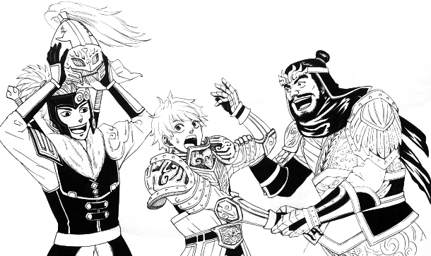 イラストは、兜を取りたがらない夏侯覇を淵ちゃんが取り押さえて、利家が取ったどーする図です。